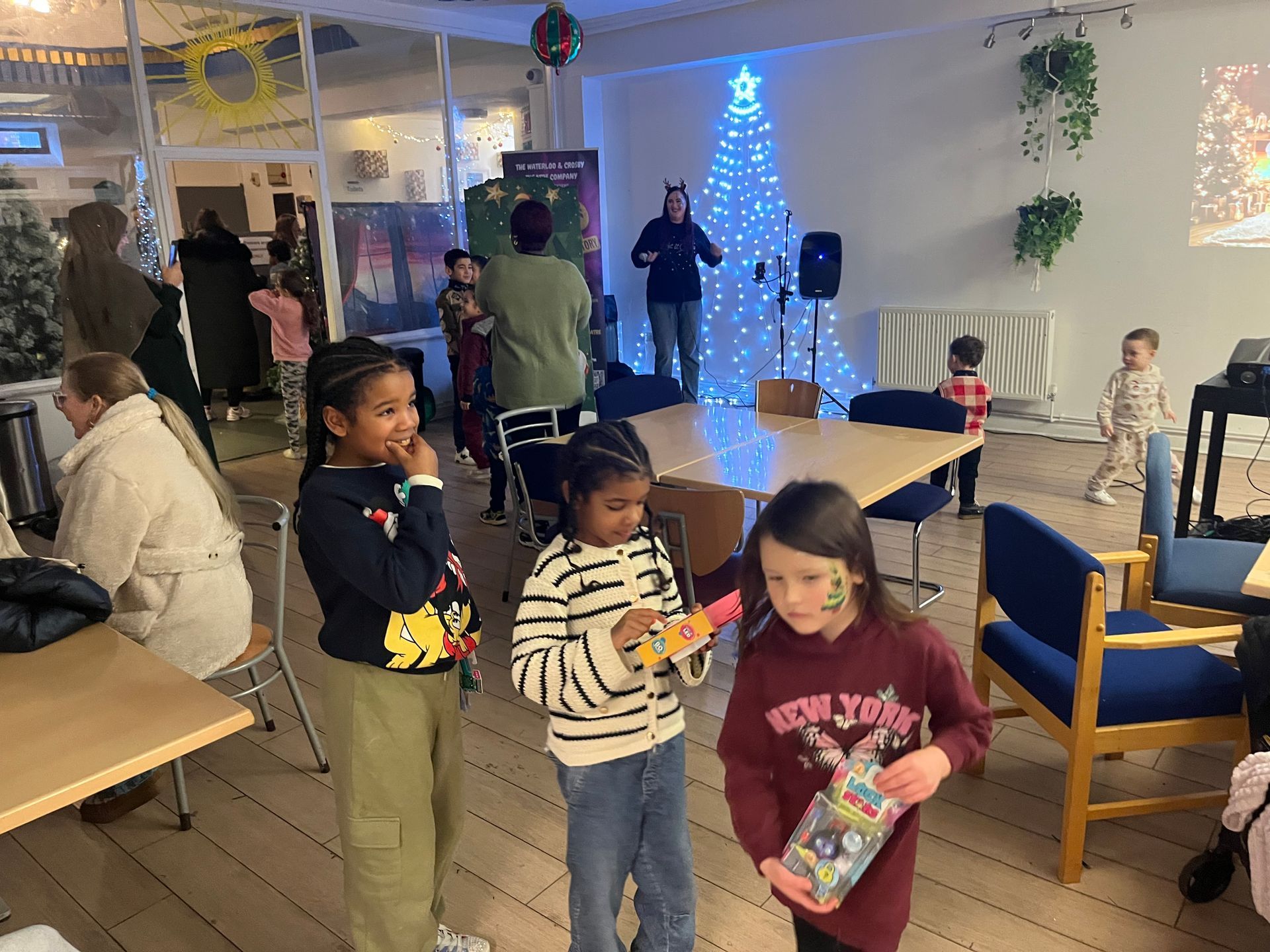 It captures a beautiful moment at the Liverpool Lighthouse Christmas event—our young ambassador Amora sitting proudly with her mum and dad, Nicky and Mike, who gave their day to become Mr & Mrs Santa Claws for the children and families who came through the doors.